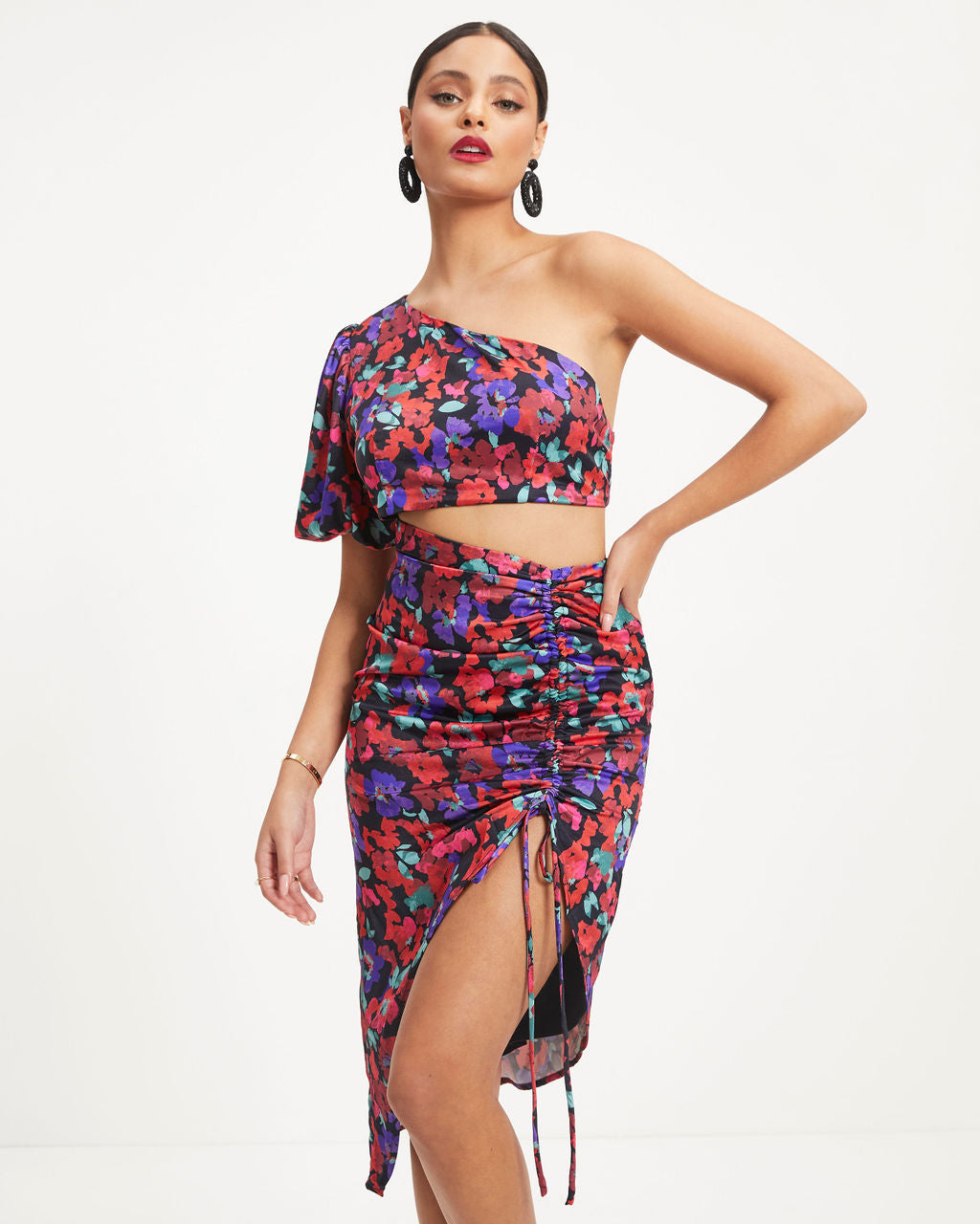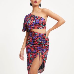 Be the first to review “Alessi Floral Cutout Ruched Midi Dress”