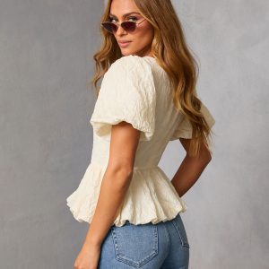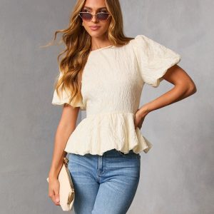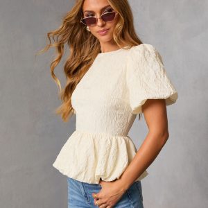 Be the first to review “Aloura Puff Sleeve Peplum Top”