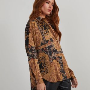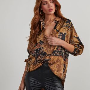 Be the first to review “Annabelle Satin Paisley Button Down Top”