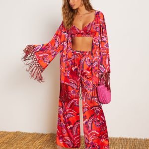 Azra Tropical Pocketed Wide Leg Drawstring Pant