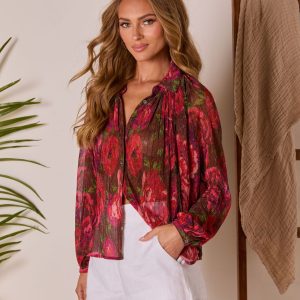 Camilah Print Pleated Chiffon Top