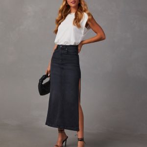 Chic Side Slit Denim Midi Skirt
