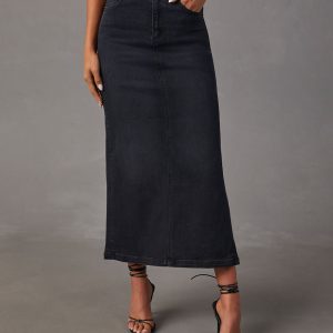 Be the first to review “Chic Side Slit Denim Midi Skirt”