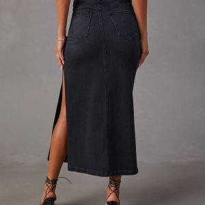 Chic Side Slit Denim Midi Skir...