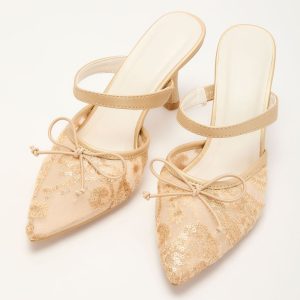 Be the first to review “Chiclet Mesh Embroidery Heeled Mules”
