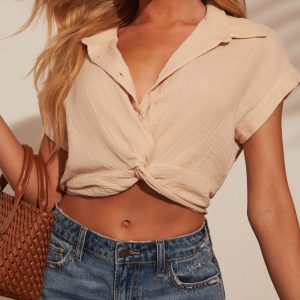Be the first to review “Cielo Short Sleeve Button Down Cropped Shirt”