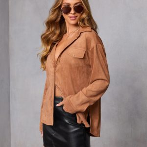 Be the first to review “Cobian Suede Button Down Top”