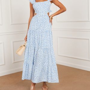 Cordelia Tiered Cut Out Back Floral Maxi Dress