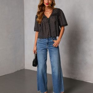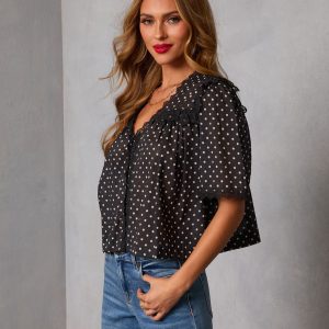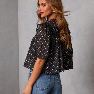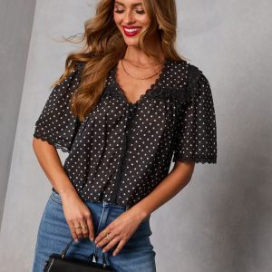 Be the first to review “Darling Spark Polka Dot Lace Trim Blouse”