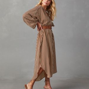 Be the first to review “Dimarco Striped Pocketed Belted Midi Dress”