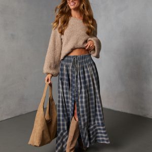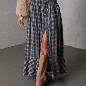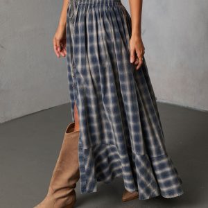 Be the first to review “Gesibella Ruffle Hem Plaid Maxi Skirt”
