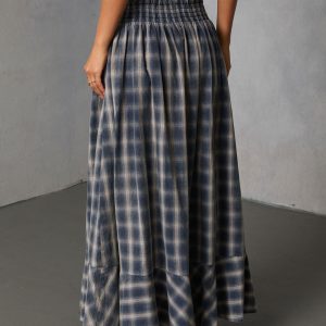 Gesibella Ruffle Hem Plaid Maxi Skirt