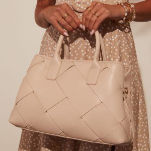 Be the first to review “Giorgia Faux Leather Woven Top Handle Bag”