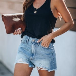 Be the first to review “Hazel High Rise Distressed Denim Shorts”