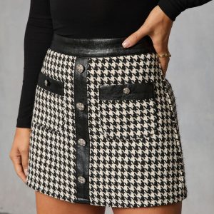Be the first to review “Holiday Elm Contrast Vegan Leather Trim Houndstooth Mini Skort”
