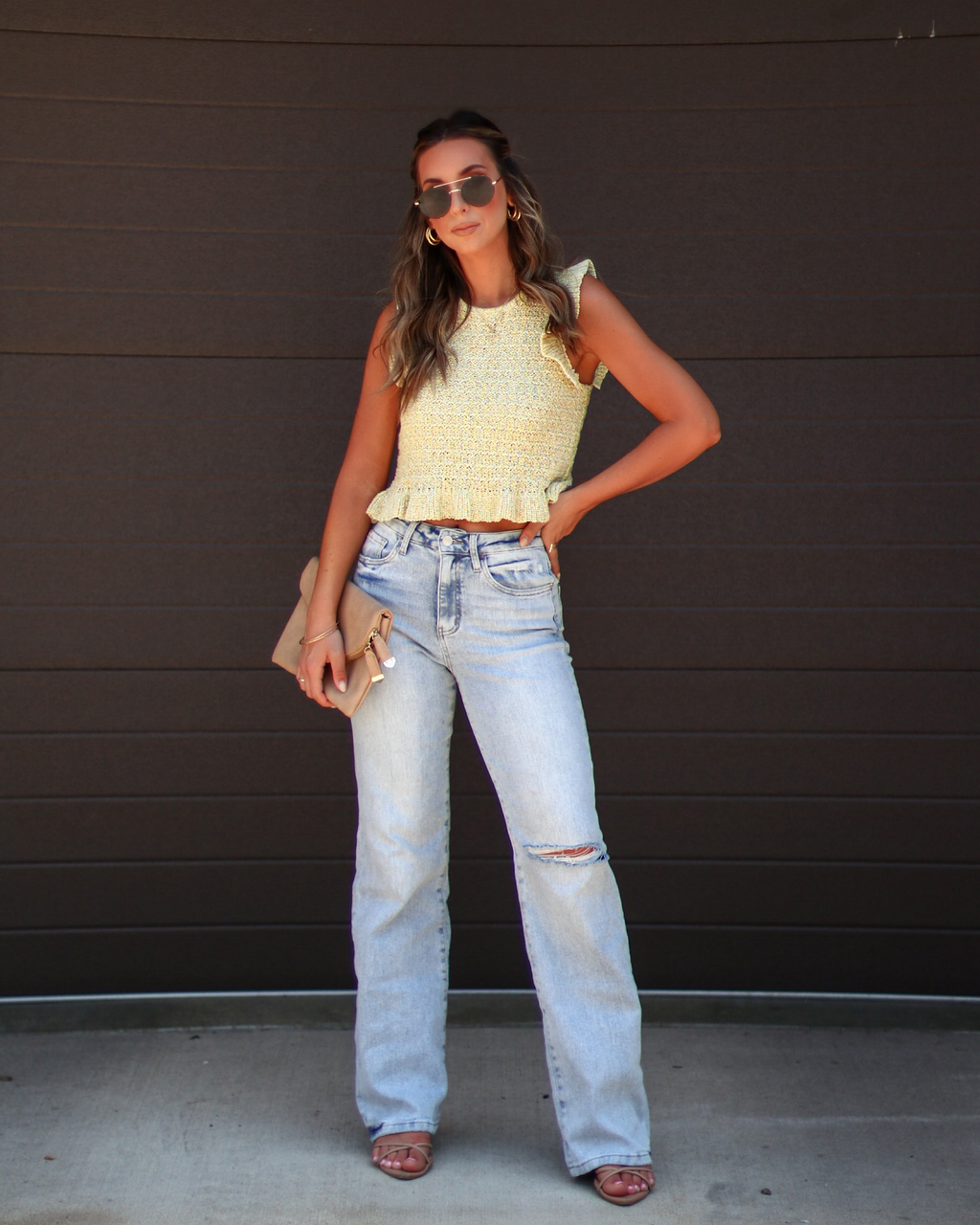 Ivelisse Smocked Sweater Knit Ruffle Hem Top