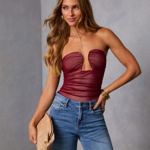 Be the first to review “Jazlynn Mesh Strapless Ruched Cutout Bodysuit”