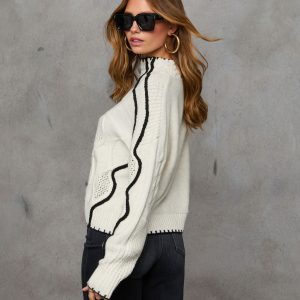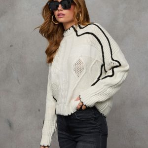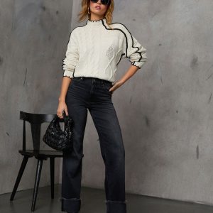 Be the first to review “Lerleen Contrast Trim Cable Knit Sweater”