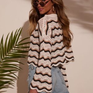 Be the first to review “Maia Crochet Stripe Bell Sleeve Long Sleeve Top”