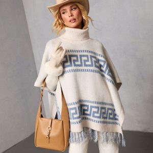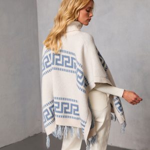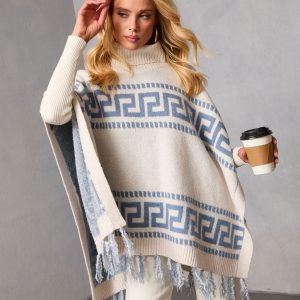 Be the first to review “Maly Abstract Fringe Trim Poncho Sweater”