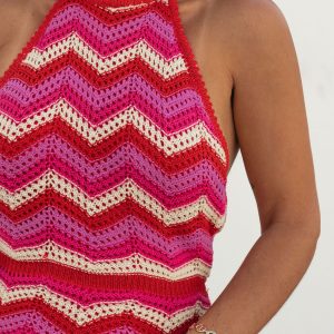 Be the first to review “Marianna Halter Knit Chevron Stripe Mini Dress”