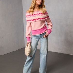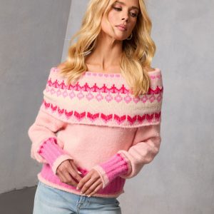 Be the first to review “Maygen Off The Shoulder Knit Fair Isle Sweater”