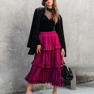 Be the first to review “Nasreen Plisse Chiffon Tiered Maxi Skirt”