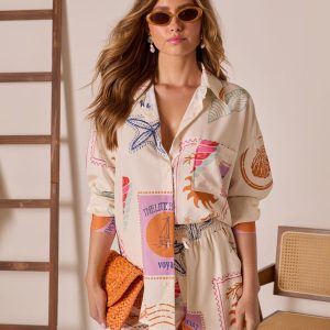 Be the first to review “Postcard Sent Stamp Print Drawstring Shorts”