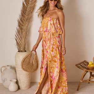 Be the first to review “Rosha Printed Strapless Tie Maxi Dress”
