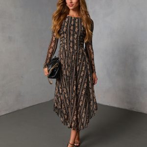 Be the first to review “Rusted Rose Printed Mesh Midi Dress”