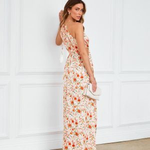 Be the first to review “Salome Floral Satin Cutout Halter Maxi Dress”