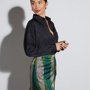 Be the first to review “Sherlyn Satin Embossed Button Down Top”