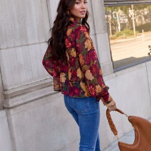Sweet Maple Floral Mock Neck Blouse
