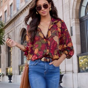 Be the first to review “Sweet Maple Floral Mock Neck Blouse”