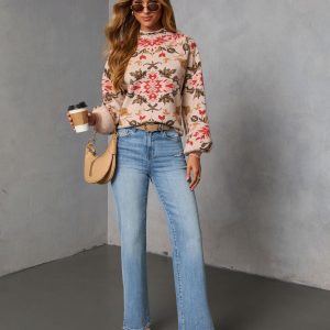 Be the first to review “Terracotta Haze Printed Mock Neck Sweater”