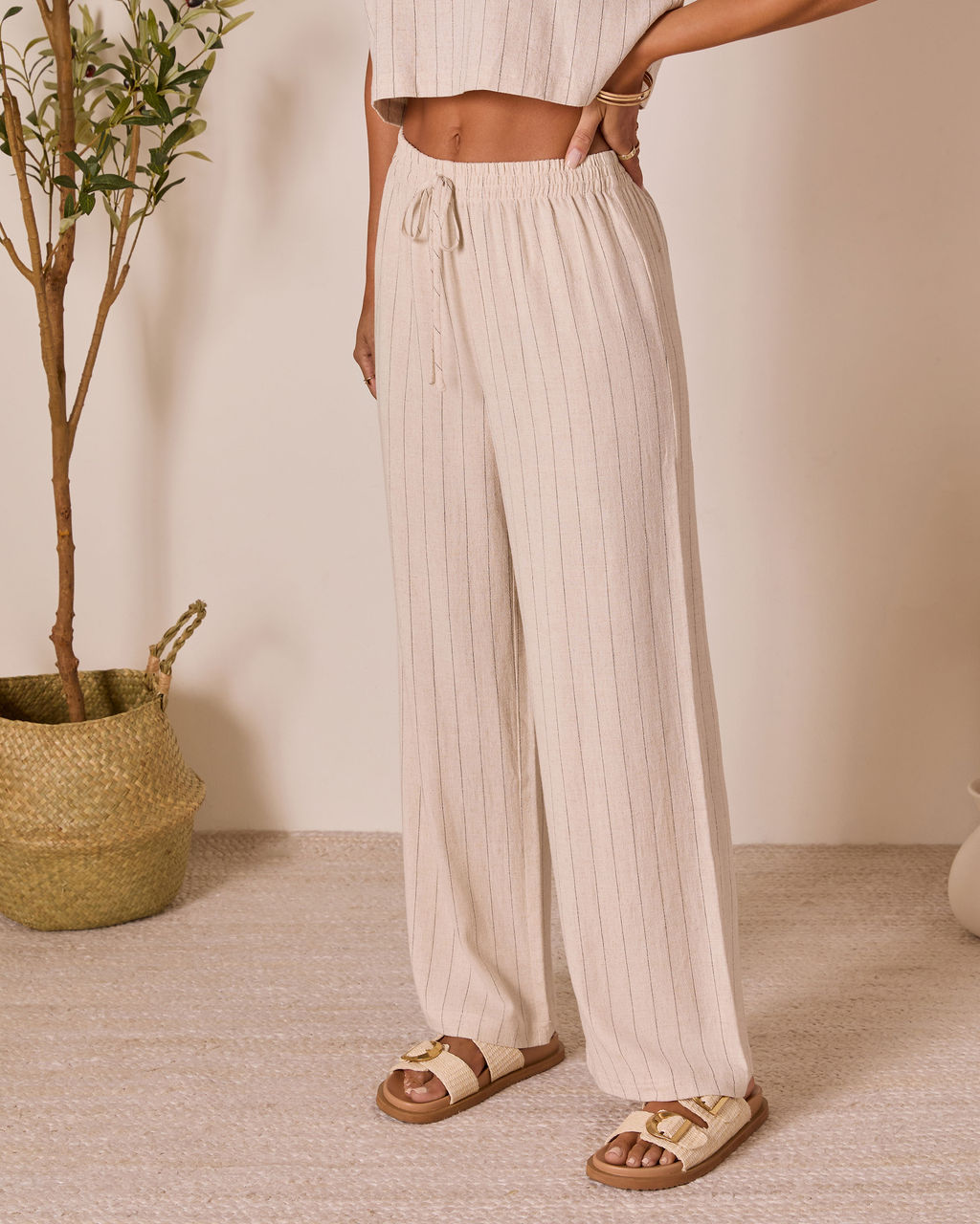 Tippie Linen Pinstripe Pants