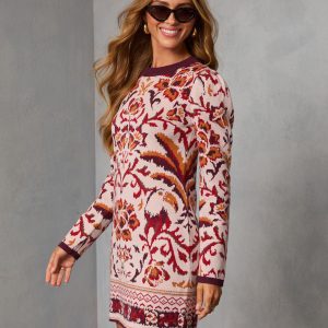 Wild Marigold Printed Mini Sweater Dress