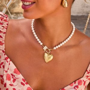 SKU: PEARLHEARTBAUBLENECKLACE-Gold-O/S Categories: