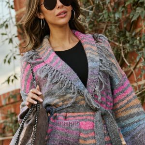 Zafina Fringe Waist Tie Cardigan