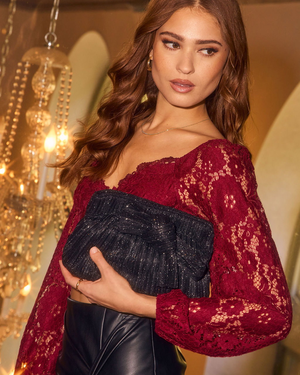 Be the first to review “Zolie Pleated Lurex Bow Clutch”